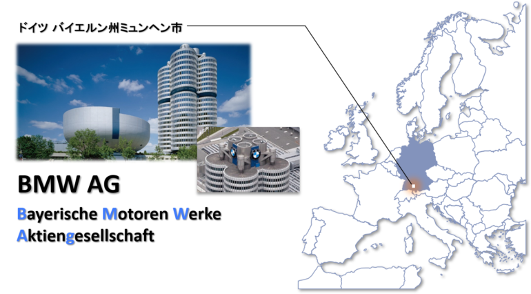 皆さんもご存じのロゴは、航空機と青い空、そして雲を描いて作られています。当初のBMWは航空機のエンジンを作るパイオニアであり、1933年から自動車を作り始めました。BMWの特徴は、曲がる・止まる・加速するという性能に特化しているところです。世界最高峰のエンジンを搭載させるというこだわりを持ちながら、最新技術へ取り組んでいこうという姿勢があり、電気自動車の開発にも精力的に取り組んでいます。BMWは、B:バイエルン M:モトーレン(エンジン) W:製作所という意味となっています。