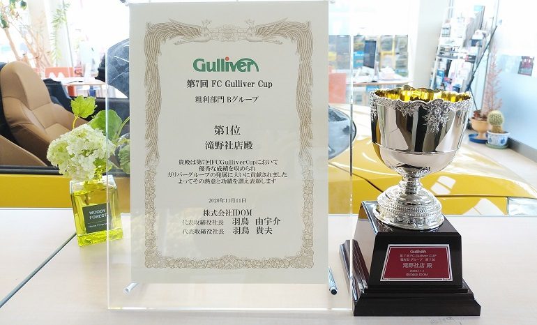 9月、10月の合計の総粗利での勝負となり、ガリバー滝野社店が全国1位を勝ち取りました!