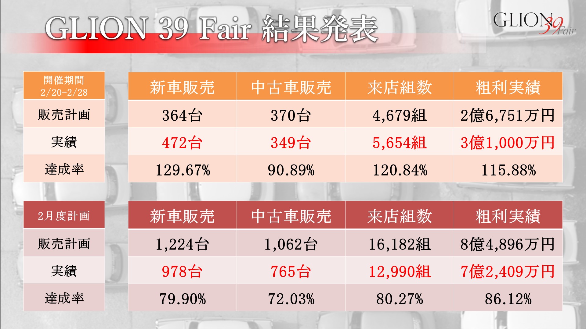 『お客様への感謝を様々な施策で表現し、この時期での昨年実績・年間計画に更なるプラスアルファの収益をつくること』を開催趣旨に掲げ、2月20日から9日間にわたり開催された、GLION 39 Fairが無事閉幕。