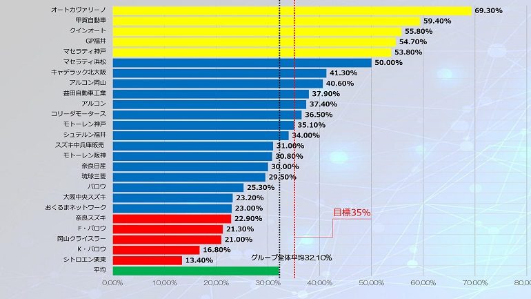 今期も引き続き、付保率の目標設定を35%として販社ランキングを随時配信してまいります。