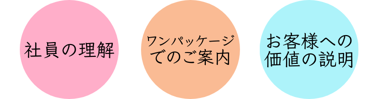 ✓メーカー延長保証に加え、ボディーコーティング、ルームクリアコート、タイヤ保証等を全て入れたワンパッケージにしてしまい、本来であれば○○円のところを▲▲円でご提供しますという旨お伝えする。