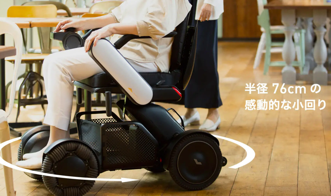 「WHILL Model C2」は高いデザイン性と、5cm の段差乗り越え、回転半径 76cm の小回り能力、リアサスペンションを採用した滑らかな乗り心地などを特長とした、高齢者の安全な外出をサポートする近距離用のモビリティです。 WHILLは5cmの段差乗り越えや小回りの高さ、悪路も走行できる高い走破性と高いデザイン性を備えております。分解が可能な為、クルマのトランクにも載せることが出来て持ち運びも便利です。