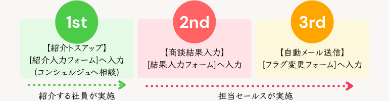 また、トスアップされた店舗の担当セールスの方は商談で結果が決まり次第、[結果入力フォーム]へご入力下さい。管理ナンバーが分からない場合は、本記事最後のお問い合わせ先までお電話をお願い致します。