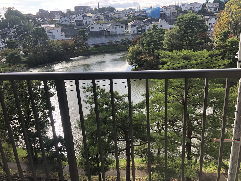 約17畳の広々リビングからは、枚方市の都市公園『以楽公園』が望め、自然の湧水からできている池の水面を眺めながらゆったりとした日常をお過ごしいただけます。