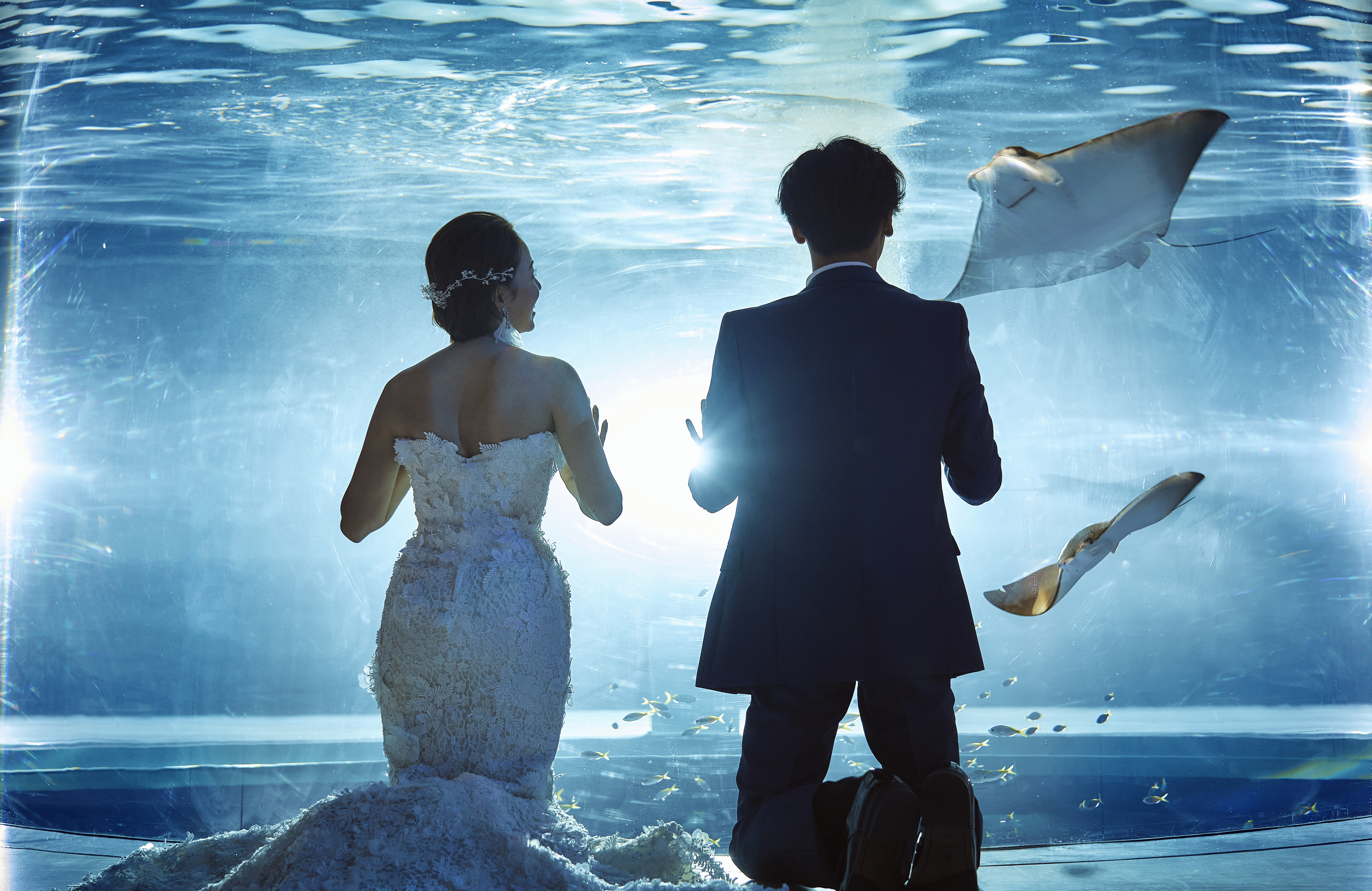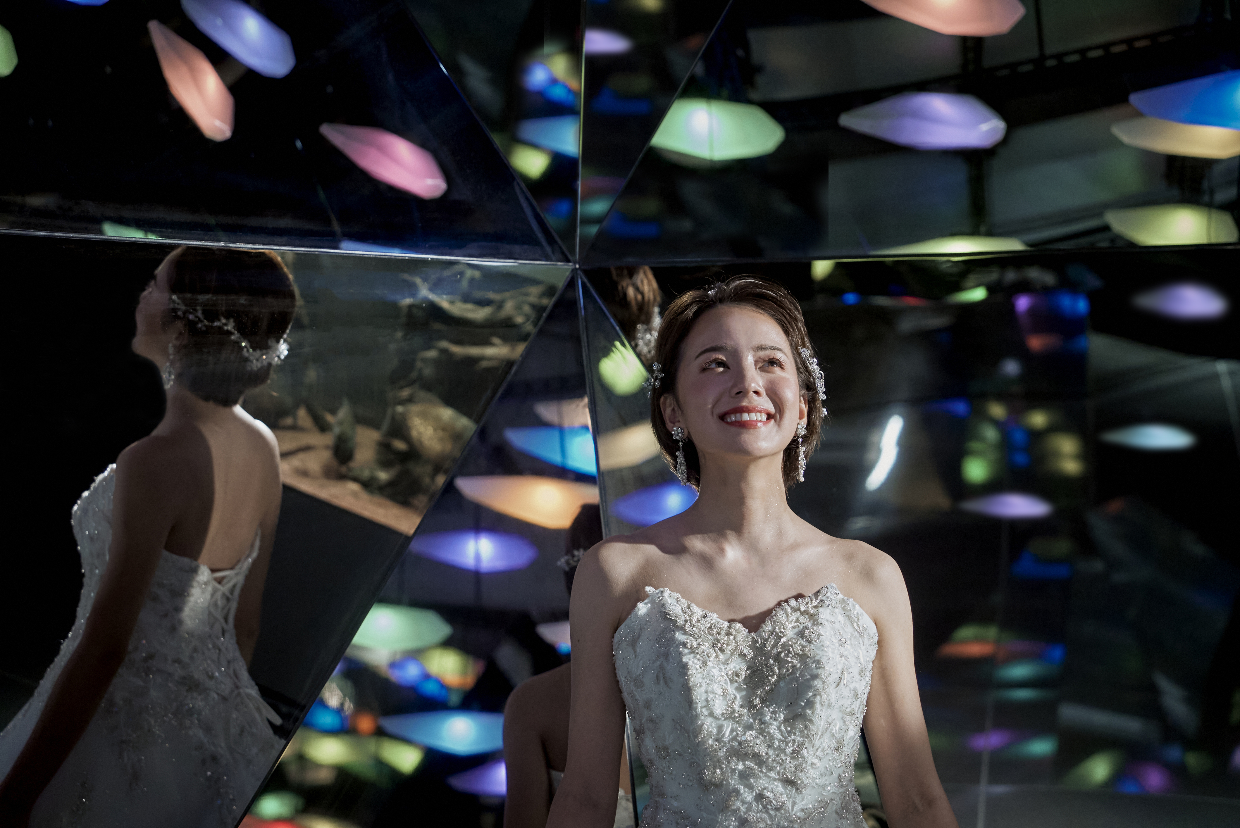 独創的な世界観を演出するアート・アクアリウム「átoa」を全館貸切で撮影。個性溢れるフロアで他にはないウェディングフォトを叶えます。(全天候型なので寒さや天気を気にせず撮影頂けます!)