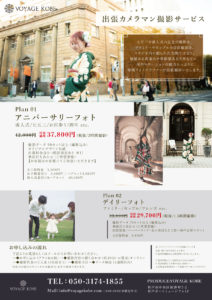 フォトウェディング事業で好調なVOYAGE KOBEから新たに記念日や日常を彩る一般向け「出張カメラマン撮影サービス」をリリースいたします!ウェディングで提供している撮影技術を、より一般向けに広げていきたい目的で、現在トレンドのロケーション撮影をカメラマンが出張撮影させて頂きます。