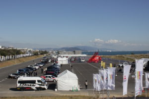 GLIONグループは5日、6日に車両展示のブースを出展しました。アスファルトフィールドにて、Gスクエアからベンツ、ベントレー、アストンマーティン等のプレミアカー8台、マセラティ神戸から3台、Kobe BMWハーバー神戸支店から2台、MINIハーバー神戸から2台、昭和トラストからカスタムカー2台、合計17台のブランド車が勢揃い。競技に参加した選手や家族連れの方々など多くの方々が立ち寄り普段あまり見ることができない車両に興味を示しておりました。