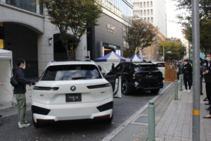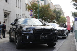 Kobe BMWハーバー神戸支店からBMWのEV車iX」「iX3の2台を展示。またi4 M40の試乗車もご用意し、担当者がお立ち寄りいただいた多くの方々にBMWのEV車の魅力をPRしました。