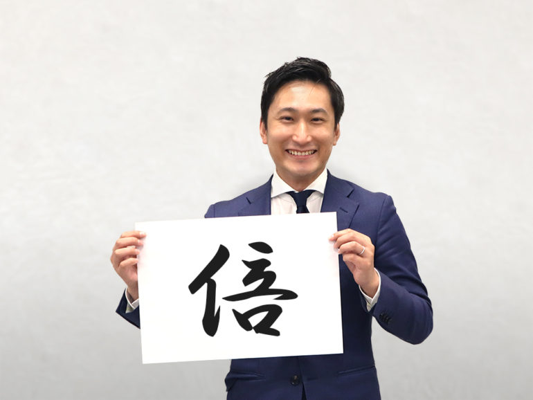 本年のテーマは「倍(ばい)」と致しました。自身が担当させて頂いております金子真珠とVOYAGE KOBEにおいて、現場の皆様の努力による基盤が固まりつつあると実感を得ております。そのような中、さらに成長の速度を早めるために、倍の成果を(裏)目標として設定致します。今までの実績に捉われないように、「倍の目標を設定した場合にどのような取り組みが必要なのか」を常に自問自答し、「大きな変化を起こすためのアクション」を発信し続けます。結果、実績の向上はもちろん個人とチームも倍の成長を遂げられるよう飛躍の年に致します。