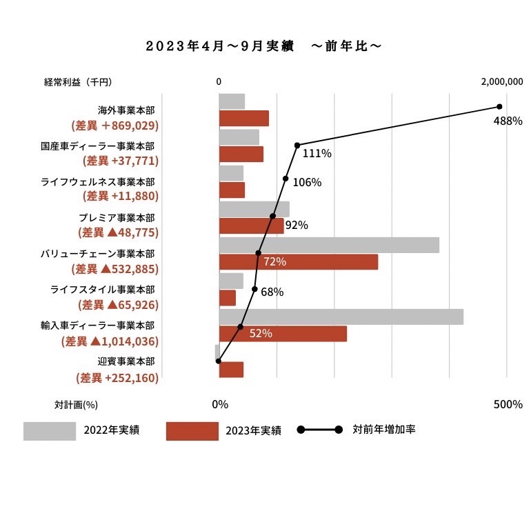 ■経常利益実績(月1回配信)経常利益の事業部別実績の結果をご報告します。