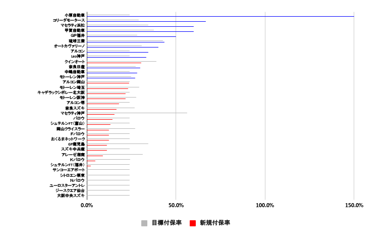 1位の小原自動車は付保率150%と大きく数字を伸ばしていただいています。