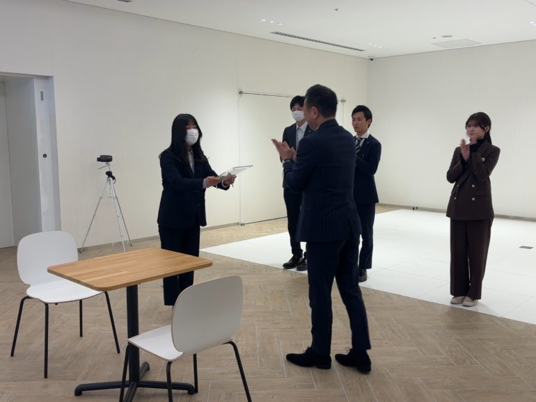審査員として参加されていた拠点長や部長を目の前に、初めは緊張が見られましたが、ロープレが始まると自信を持って提案できていました。