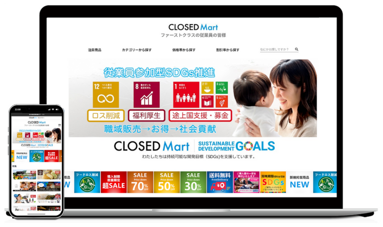 賞味期限間近の食品やモデルチェンジ前の家電など一般流通が難しい商品をお求めやすい価格で購入できるマーケットとなります身近なところからSDGsに参加してみませんか?