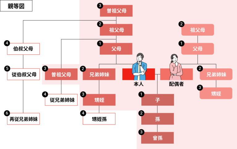 【対象者】在職中の全グループ社員・アルバイト・契約社員正社員ご本人(配偶者含む)から見て、第3親等まで