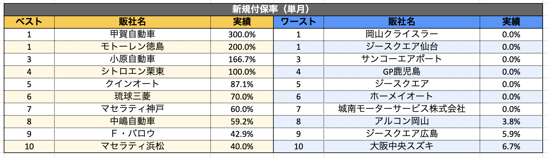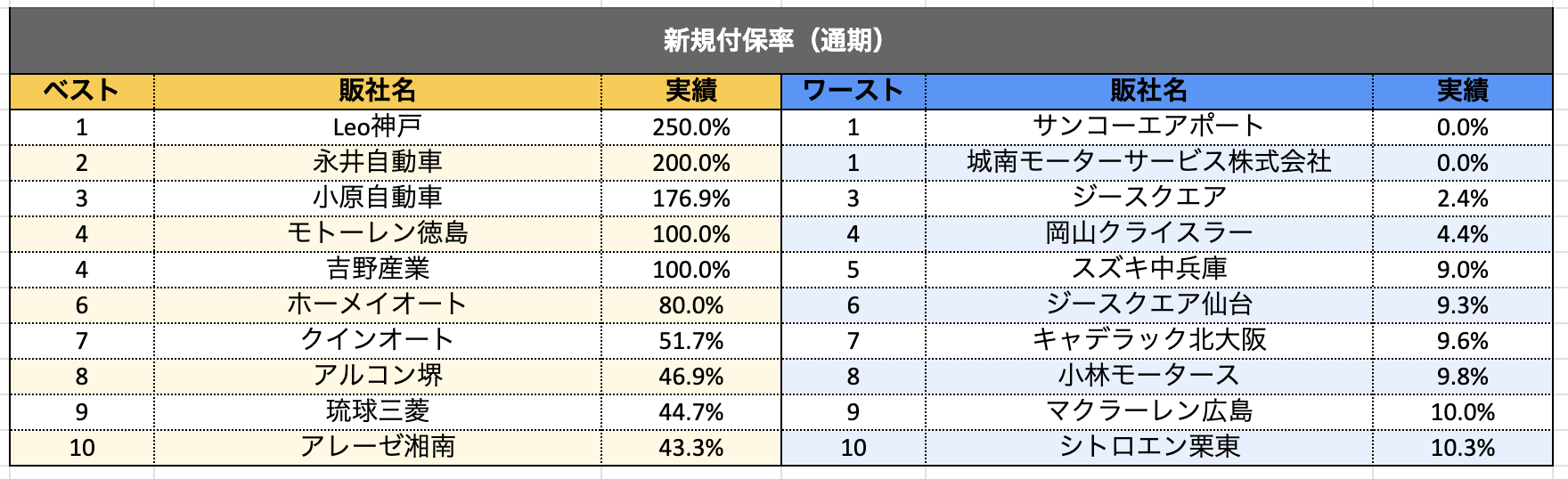 8月単月の付保率ランキングでは100%を超える販社が4社。
