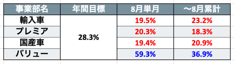 組織再編会議でも共有しておりますが9月末を締めた段階で、28.3%未満のスタッフにおかれましては、