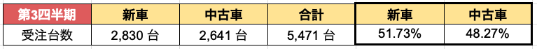 昨年度に引き続き「中古車登録台数の引き上げ」に重視していくにあたり、四半期の結果をご報告いたします。2024年度第三四半期の新車:中古車登録割合は【49%:51%】。