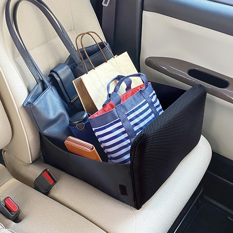 座席に荷物をそのままおくとブレーキなどの反動で落ちてしまうことがありますがカゴを使うことで落ちにくくなりストレスが減りました!