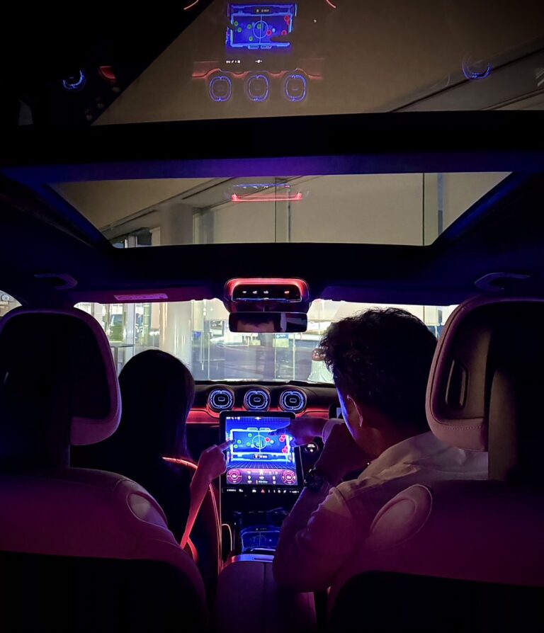 暗い空間での撮影にも関わらず、シルエットで「車の中」というのがしっかり表現されているところがGood Pointです。メルセデス・ベンツの良さを最大限に引き出せています。
