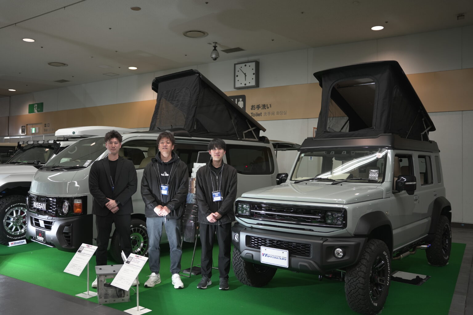 アウトドアゾーンにおいて「ジムニーノマド」と「キャラバン」のカスタムカーが展示され、多くの来場者の注目を集めていました。