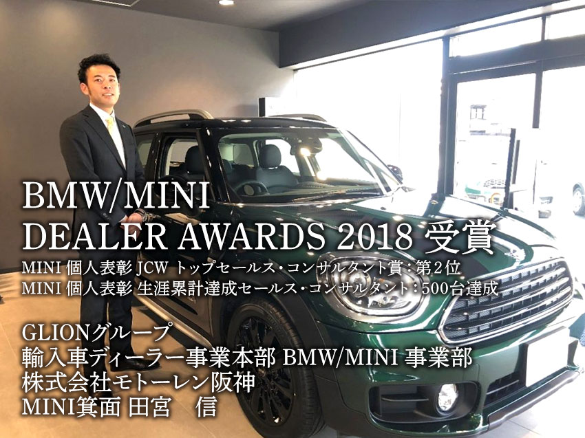 この度、GLIONグループ 輸入車ディーラー事業本部が各メーカーでの2018年度ディーラーアワードにて数々の賞を受賞させて頂きました。今回ご紹介するのは、MINIブランドを扱う株式会社モトーレン神戸 MINI姫路。… -